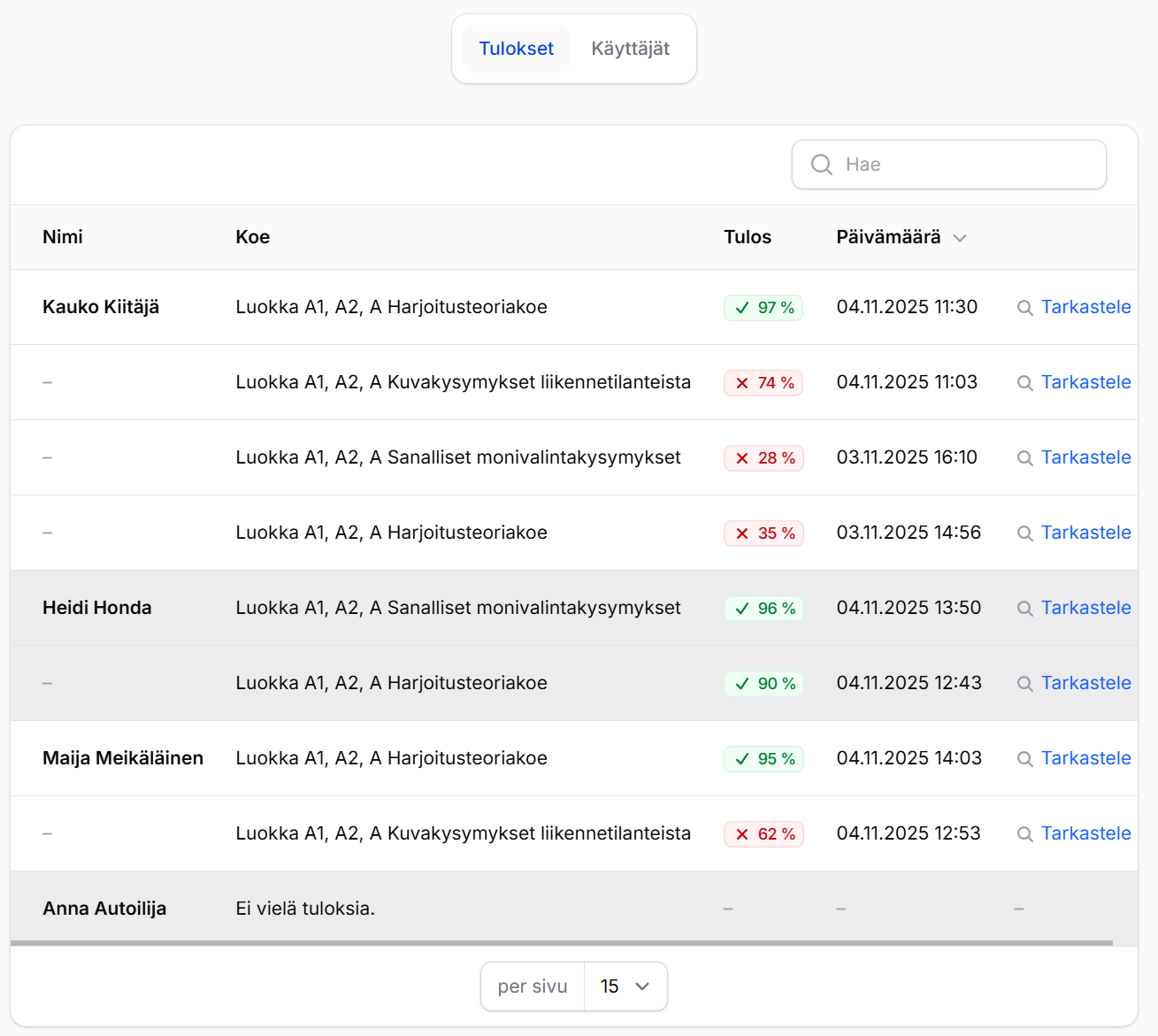 Tarjoa oppilaillesi markkinoiden laadukkain teoriaharjoitteluympäristö ja seuraa heidän edistymistään vaivattomasti. Rekisteröitymällä kouluttajaksi voit ostaa lisenssejä joustavasti omille asiakkaillesi ja antaa heille parhaat mahdolliset työkalut Traficomin kokeisiin valmistautumiseen.